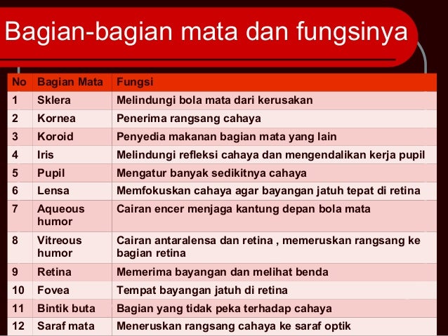 News Bagian Mata Dan Fungsinya. Itu artinya, ketika ada bayangan benda yang jatuh ke titik ini, kita tidak akan bisa melihatnya. See full list on academia.co.id